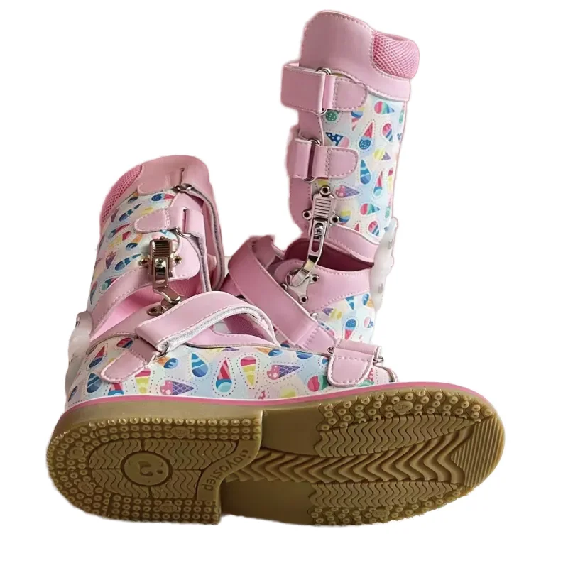 Zapewnij swojemu dziecku idealne połączenie wsparcia medycznego i komfortu dzięki naszym wysokiej jakości dziecięcym ortopedycznym butom AFO, specjalnie zaprojektowanym do korygowania stopnia kuczawego i wspierania implantów protez. Te różowe buty wysokiego wzoru wykonane są z wysokiej jakości skóry i materiałów gumowych, co gwarantuje trwałość, przewiewność i długotrwałe użytkowanie dla aktywnych dzieci.